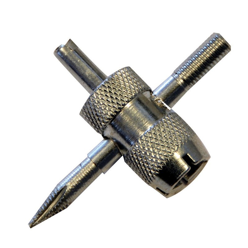 Sivitec Zinc-plated body Knurled detail for added grip Four functions in one pocket-sized tool Removes valve inserts, cleans valves & repairs internal/external valve threads Compact & convenient