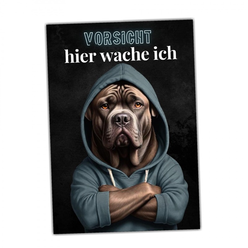 - Great caution home door sign dog sign with dog motif: Vorsicht hier wache ich Cane Corso motif. The dog is wearing a hoodie. The dog sign for your door or garden fence. Weatherproof and UV-resistant printed with great dog motif in the latest UV printing process. Siviwonder