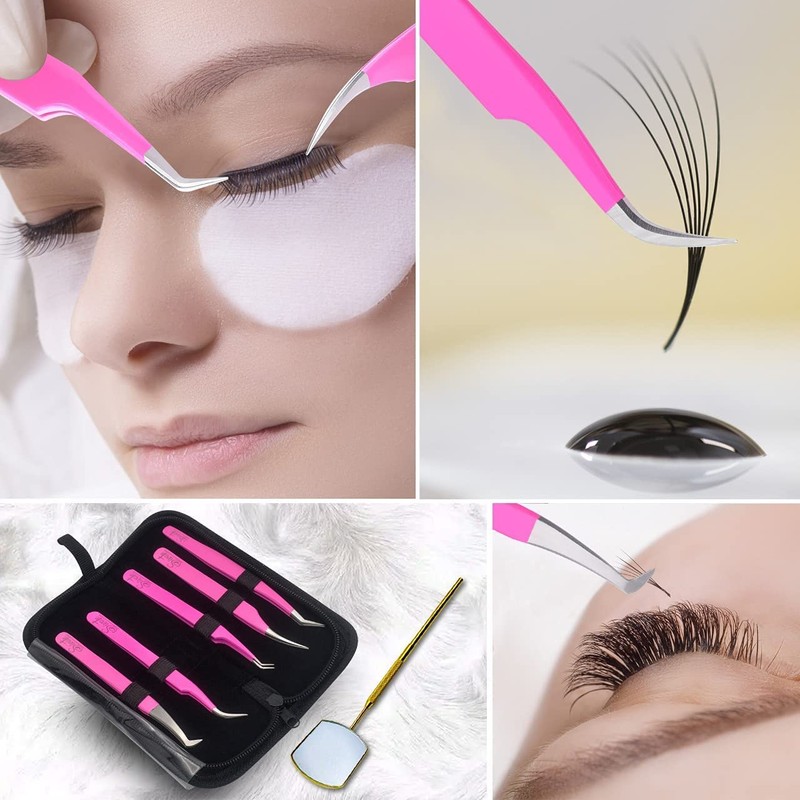 SIVOTE Eyelash Extension Tweezers for Classic & Volume Lashes, 5-Pack, Pink