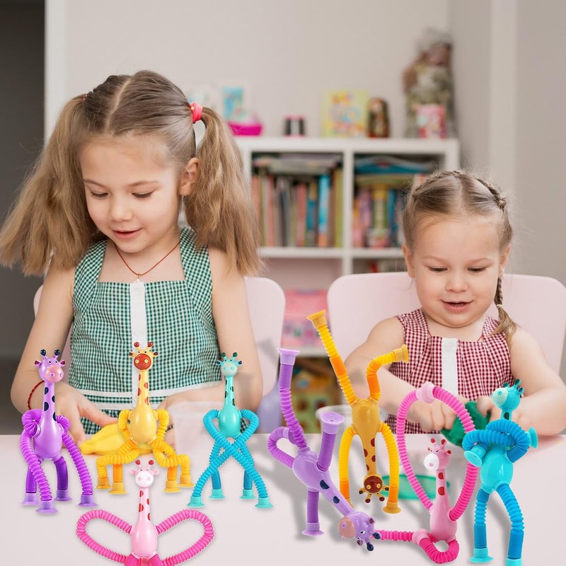 - Giraffe telescopic suction cup toy. The giraffe telescopic suction cup toy is a novel and interesting sensory toy that consists of a tube that can be stretched and rotated. One end of the hose is connected to a cute animal body, and one end is equipped with a suction cup, which can be stretched and twisted into different shapes and fixed.
