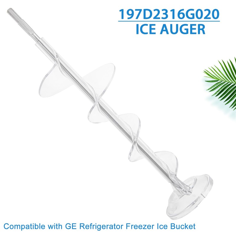 197d2316g020 ice maker auger has a metal rod in the center and a plastic rotator that is used to push the ice to the dispenser through the chute. The ice maker auger is located within the ice bucket assembly in your freezer. It stirs and dispenses the ice in the bucket. You may need to replace the auger if your ice maker is noisy, or not dispensing ice.