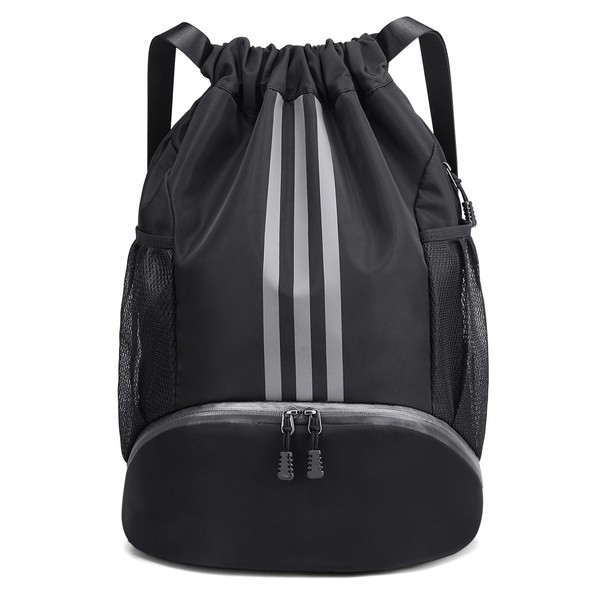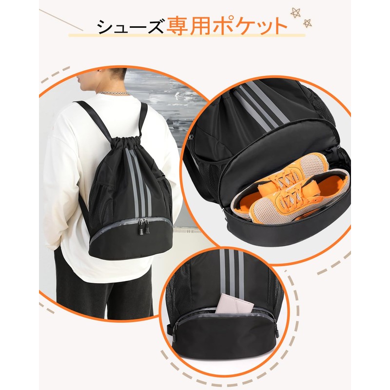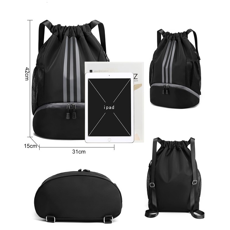 - Multi-pocket gym sack: Our backpack is designed with main pocket, inner pocket, side mesh pocket, shoe pocket and anti-theft pocket recycle pockets. Two side mesh pockets on both sides of the knapsack can easily accommodate water bottles, umbrellas, etc. The main pocket can hold books, ipad, etc. There is a separate shoe pocket on the bottom, so you can separate the shoes from other items, so you don't have to worry about stains. Anti-Theft pocket can put your card or keys. In addition, the interior zipper pocket is also designed to hold valuables such as exercise clocks and wallets to avoid wear and loss