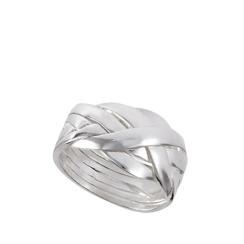 Six Piece Hard Puzzle Knot Weave Mesh Ring .925 Sterling Silver Band Size 8