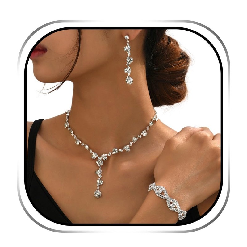 - Sparkly necklace jewelry is classic and fashionable design,mainly composed of rhinestone necklace,rhinestone bracelet and rhinestone earrings