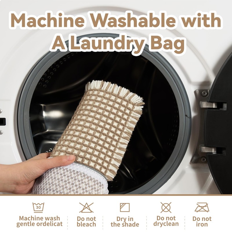 EASY CLEAN AND CARE: Machine washable bath mat non slip anti mould provide convenience in your daily life. This bath mat can be machine washable with a laundry bag.Recommend gentle mode,cold water. Or just shake the dust off from the bathroom mats for simple cleaning.