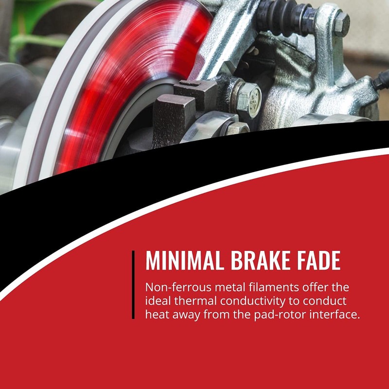 - MINIMIZE BRAKE FADE: the non-ferrous metal filaments enable ideal thermal conductivity to quickly conduct heat away from the pad-rotor interface, ensuring minimal brake fade