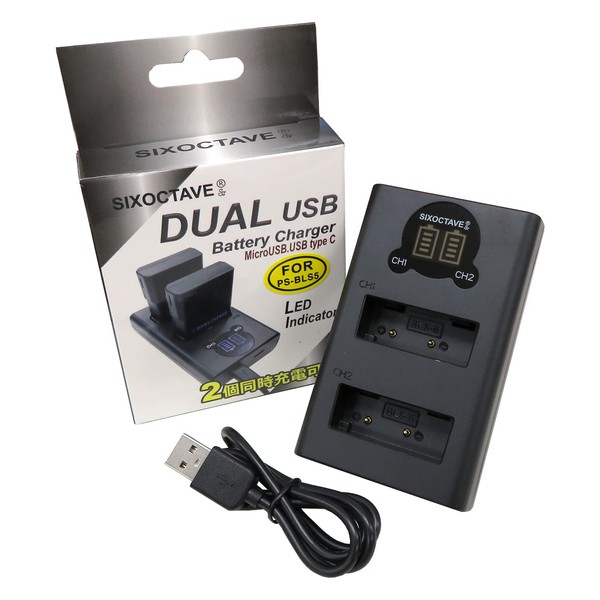 SIXOCTAVE BLS-1 / BLS-5 / BLS-50 / PS-BLS1 Dual USB Charger BCS-1 / BCS-5 Olympus PEN E-P7 E-410 E-400 E-420 E-620 E-PL1 E-P1 E-P2 E-P3 E-PM1 PL1s E-PL 2 E-PL5 E-PM2 E-PL6 E-PL7 E-M10 Stylus 1 Stylus