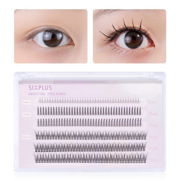 SIXPLUS False Eyelashes, Mixed Type, Mixed Eyelashes, Reusable, Long Lasting, Natural, Waterproof, With Lower Eyelashes (E)