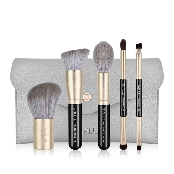 SIXPLUS Portable Makeup Brushes, 5-Piece Set, Soft to the Touch, Multi-functional Makeup Brush, Dedicated Makeup Tool, Powder Containing Power, Includes Makeup Pouch