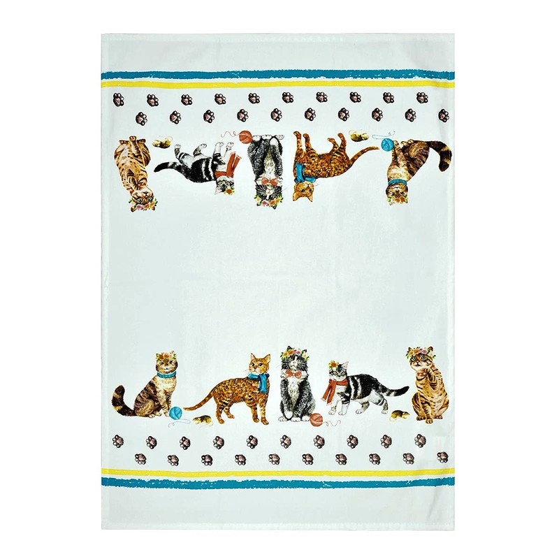 - GORGEOUS DESIGNS - This 'Cats on Parade' tea towel set includes 1 x border panel print tea towel, 1 x Teal waffle and 1 x Cats on Parade all over print MADE FROM 100% COTTON - Our tea towels are made from 100% cotton