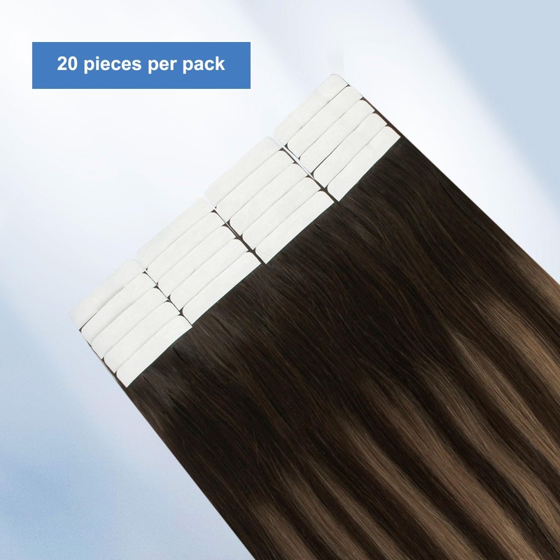 Sixstarhair Tape In Hair Extensions Balayage Color Dark Brown Fading to Chestnut Brown Real Remy Semi-permanent Hair Extensions 20 Pieces 50 Gram [Color B2-6#-22 inch]
