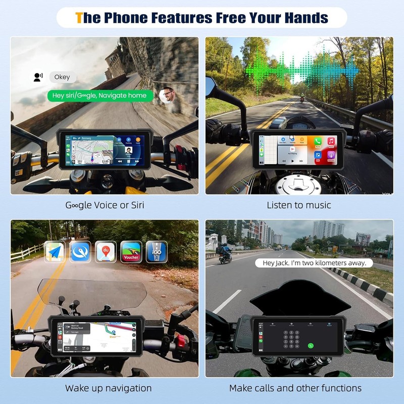 - 【Wireless CarPlay und Android Auto】 Die Motorrad-Zentraleinheit verbindet Ihr Telefon über Bluetooth oder USB-Kabel mit dieser tragbaren Zentraleinheit, sodass Sie CarPlay und Android Auto drahtlos genießen und die meisten Funktionen Ihres Telefons wie Navigation während der Fahrt sicher verwenden können