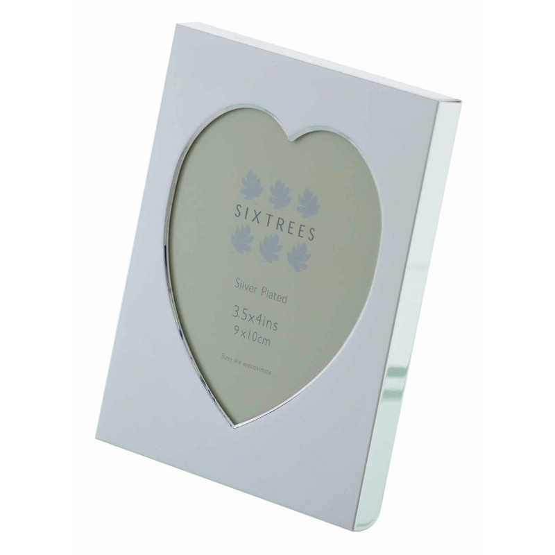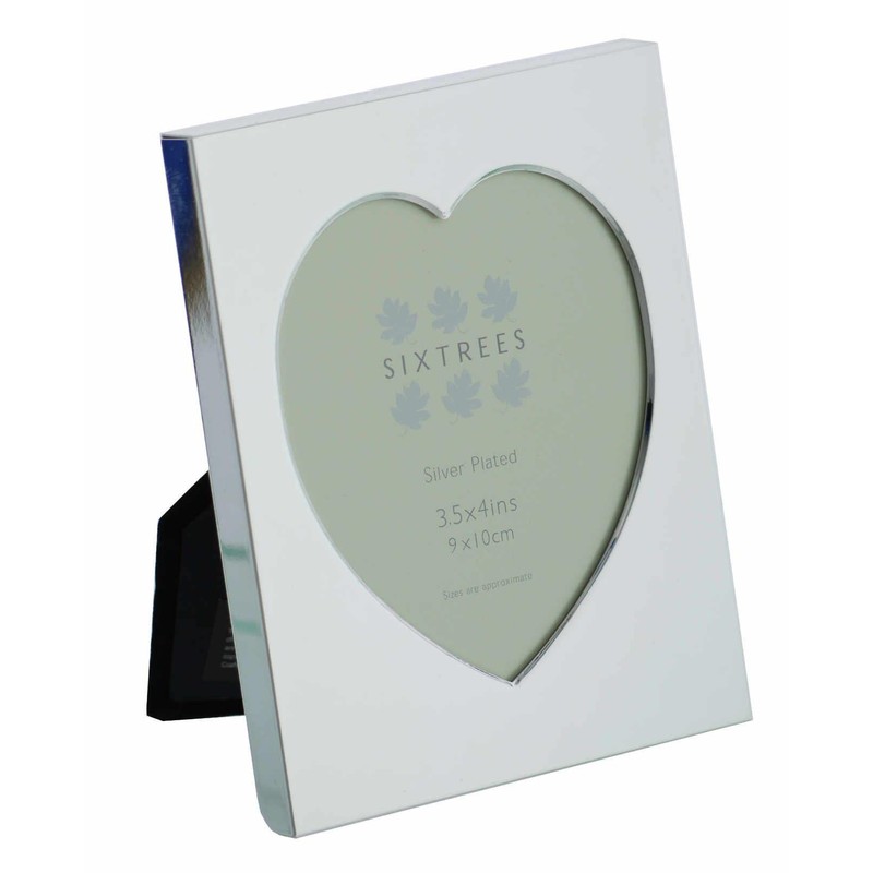 Sixtrees Romeo Heart Shaped silver plated photo frame for a 3.5" x 4" (90mm x 100mm) picture.