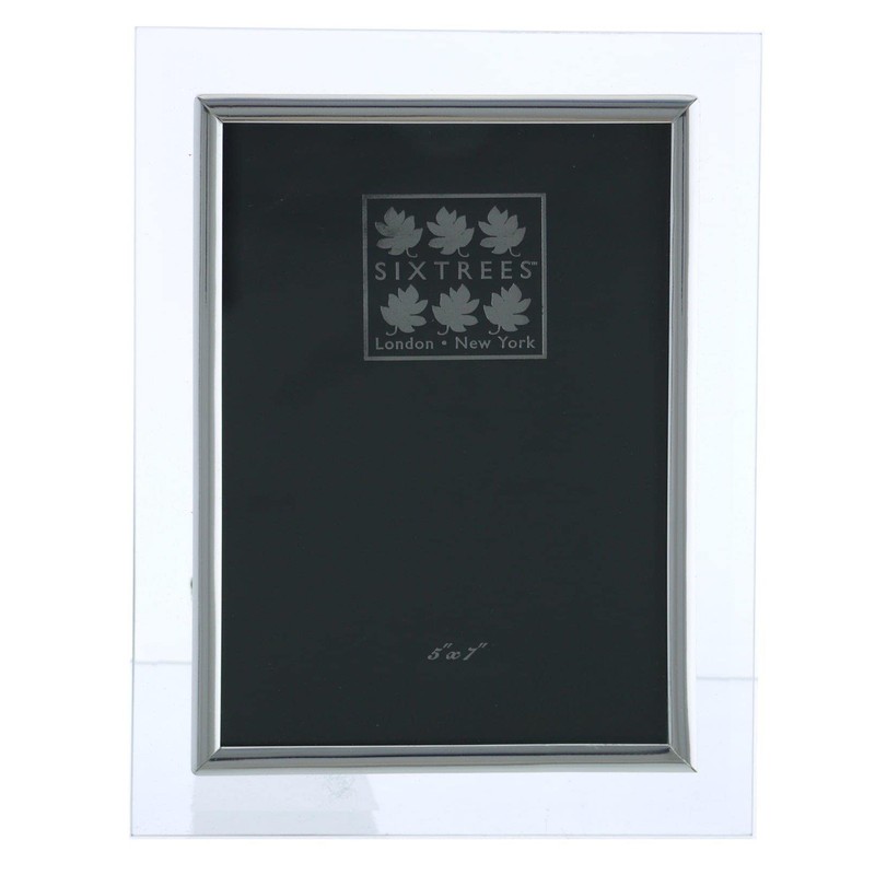 Sixtrees ST126-68 Flat Bevelled Glass 8x6 inch Photo Frame with silver detailing. Complete with microfibre polishing cloth.