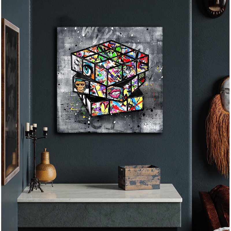 - 【EASY TO HANG】 Each panel of canvas prints already stretched on solid wooden frames, gallery wrapped, lightweight,ready to hang. The side margins are also printed to create a particularly decorative effect.banksy canvas wall art graffiti wall art pop art wall decor. Added color and fun to your bedroom, living room,office, dormitory or apartment.