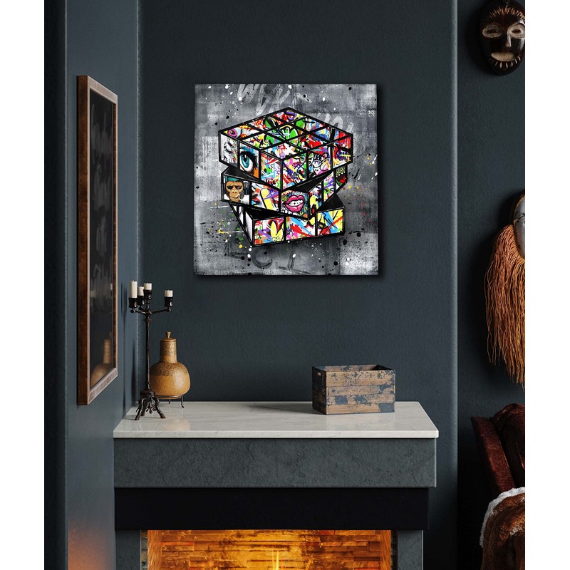SIXTTART SIXTTART Banksy Canvas Wall-Art for Bedroom - Street Graffiti Wall Art Abstract Painting Pop Art Wall Decor Modern Home Office Decor 14" W x14 H Stretched and Framed Ready to Hang