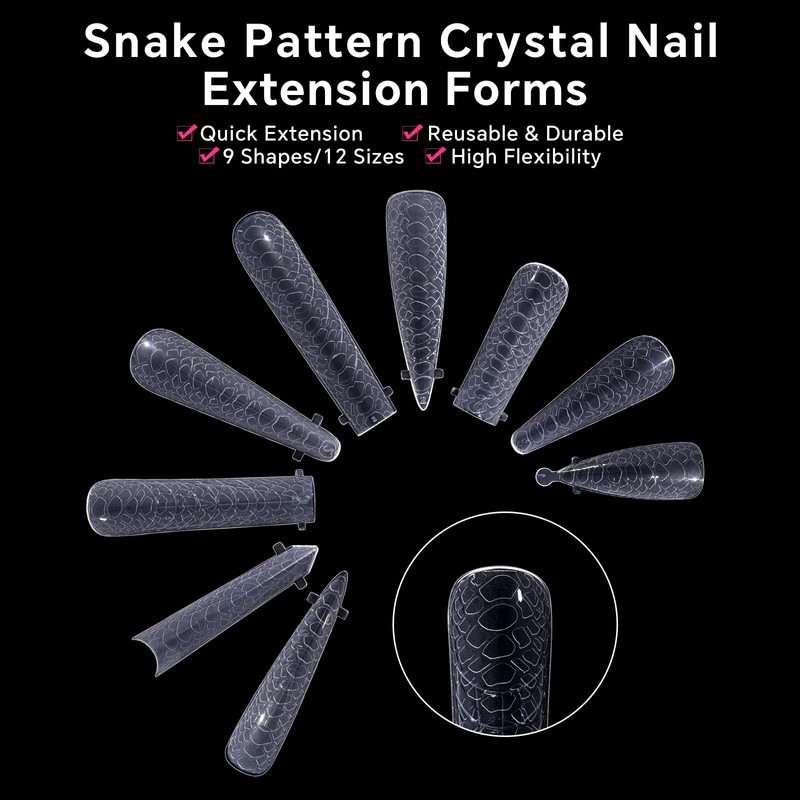 - 【Premium】The dual nail form is made of high-quality resin material, which is strong and reusable. And this nail model is uniquely designed with a detailed snake pattern, making your nail extensions more fashionable and attractive.