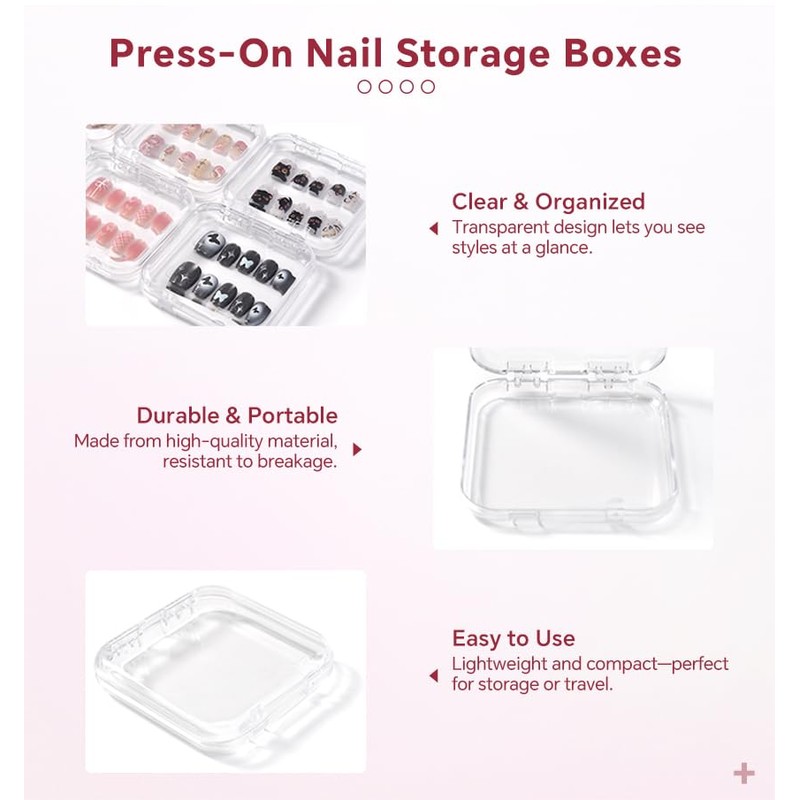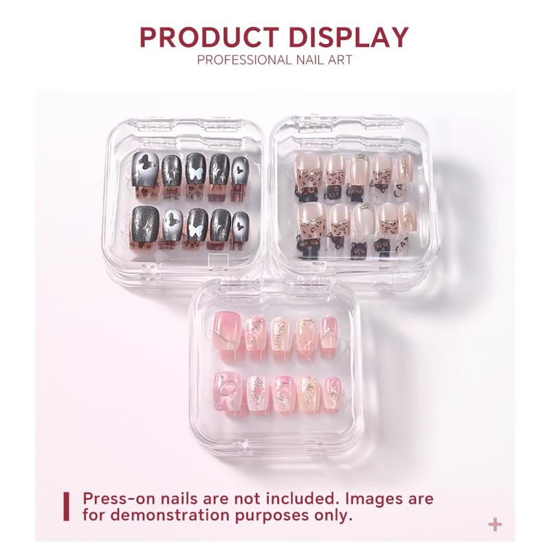 - 【Clear At a Glance】These nail storage boxes are transparent so you can clearly see what's inside. Perfect for nail salons to display and store various beautiful fake nails, allowing your customers to better appreciate your nail art skills and easily pick nail styles. And the design with lid keeps your nail art away from dust, it's a great tool for organizing press on nails.