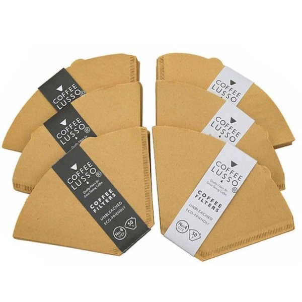 Size 4/No.4/1x4 Coffee Filter Papers by COFFEE LUSSO, Cone Shaped, Unbleached, Eco Friendly (300)