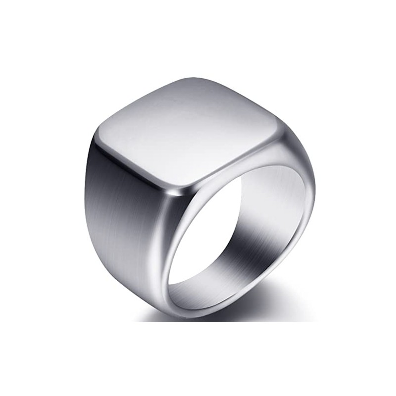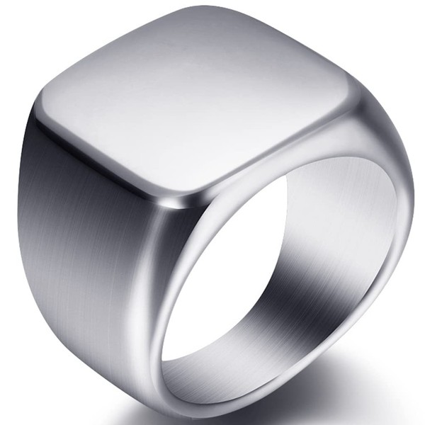 Size 5-15 Stainless Steel Signet Ring Black Silver Classical Simple Plain Cocktail Husband Father Valentine Gift (Silver, 8)