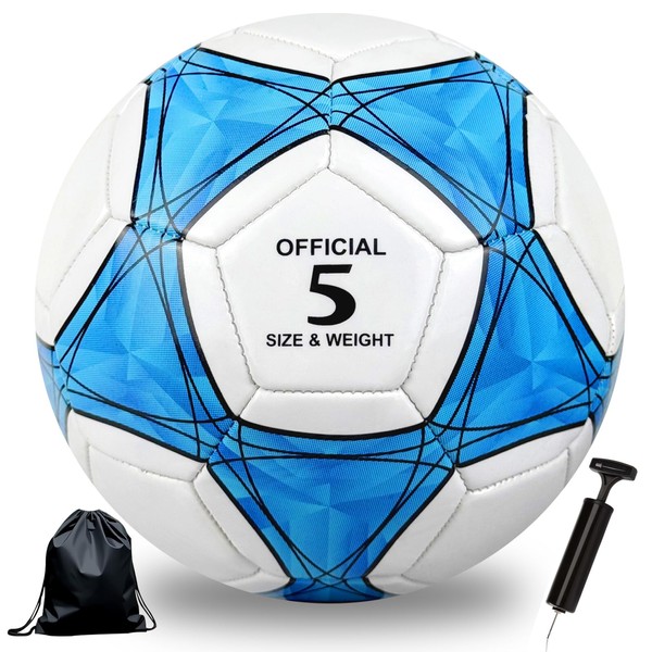 Size 5 Football Unisex - Adult Hybrid Training Football for Children and Adults Football Fans Item Football Lovers Birthday Gift Regular Play (Blue and White, Size 5)