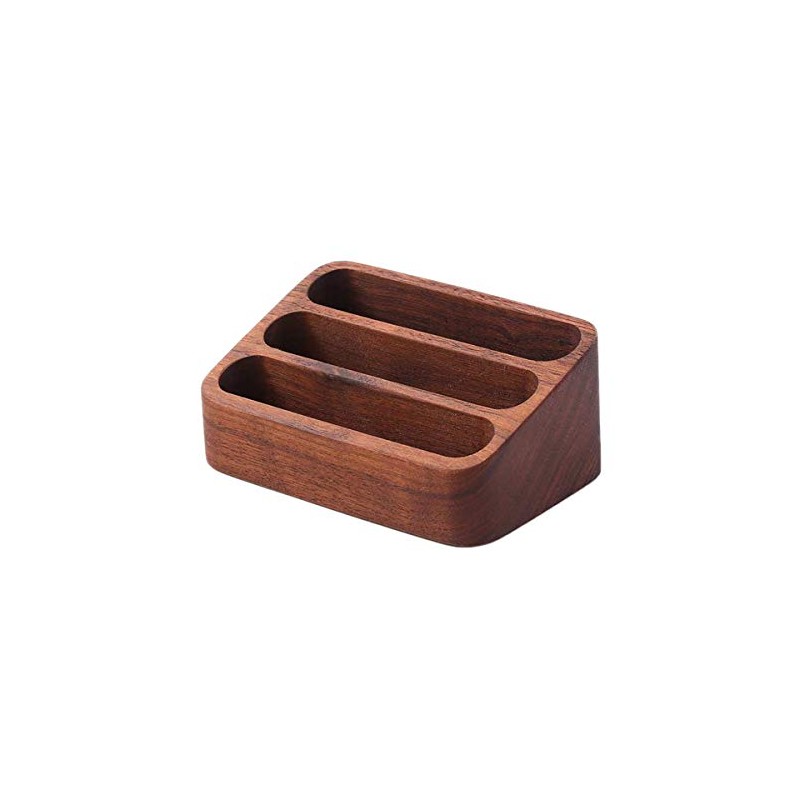 Sizikato Wooden Business Card Holder for Desk, 3 Card Slots Business Card Display Holder Stand