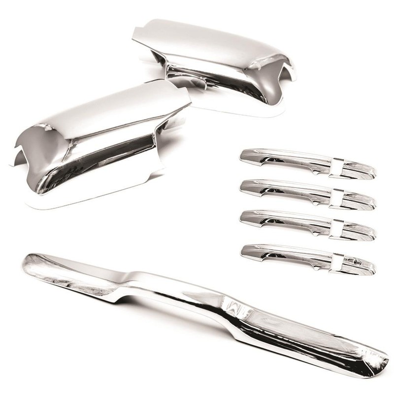 - This package comes with 2 pieces Chrome mirror covers w/ signal cut + 8 pieces Door handle covers+1 piece lower trunk liftgate cover *Overlays only, NOT REPLACEMENT UNIT*