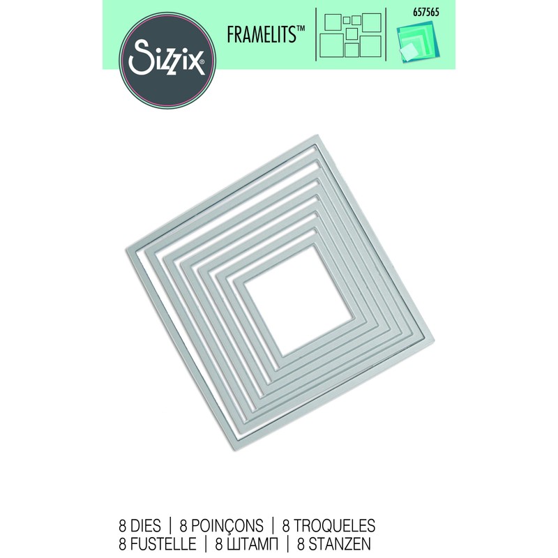 Sizzix Framelits Die Set 657565, Squares, 8 Pack, Multiple Sizes