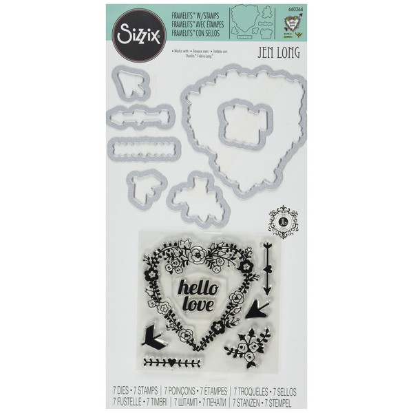 Sizzix Framelits Die Set with Stamps Hello Love by Jen Long (7 Pack)