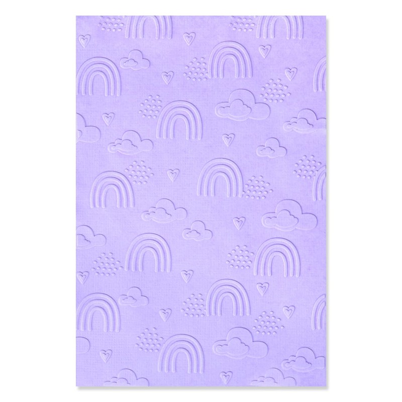 - Rainbow Sky - Craft with all colours of the rainbow with the Sizzix Rainbow Sky Multi-Level Textured Impressions Embossing Folder! Perfect for adding a whole new dimension and attention to detail to your craft projects, the Rainbow Sky Embossing Folder includes two separate layers of beautiful rainbows, delicate raindrops and soft clouds to create a stunning backdrop for any craft. Use it with the Sizzix Effectz range to achieve even more elaborate designs and stunning textures. Ideal for a variety of papercraft projects, from card making and scrapbooking to home decor.