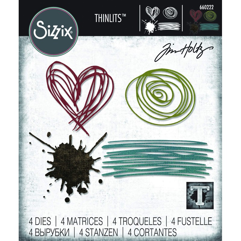 Sizzix Thinlits Die Set 660222, Scribbles & Splat by Tim Holtz, Pack of 4