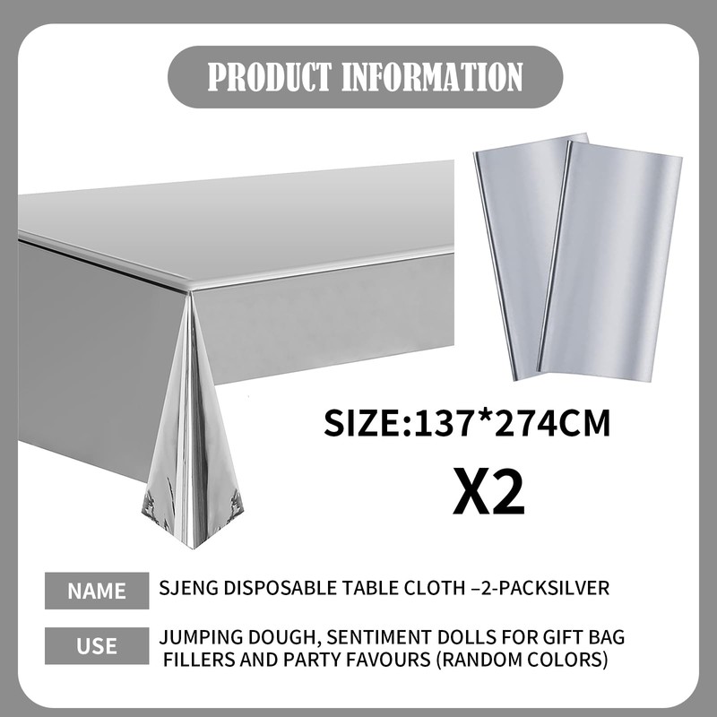 SJENG Disposable Table Cloth –2-Packsilver, Thickened Sparkle Silver Table Cloth, Perfect for Birthday Parties, Banquets, Graduations – Decorative Celebration Tablecloth