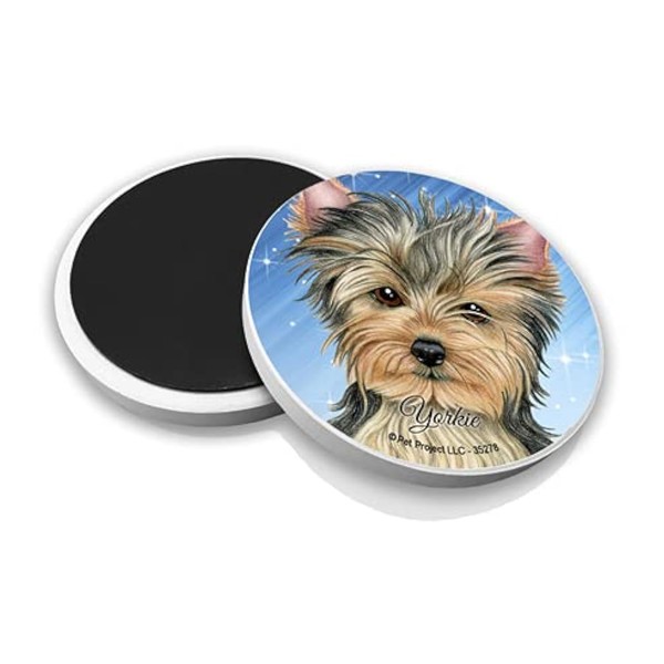 SJT ENTERPRISES, INC Yorkie 2.6" Absorbent Stone Car Coasters with Magnet on The Back - Use as Car Cup Holder Coaster or Kitchen Magnet - Artist Tomoyo Pitcher - Set of 2 (SJT35278)
