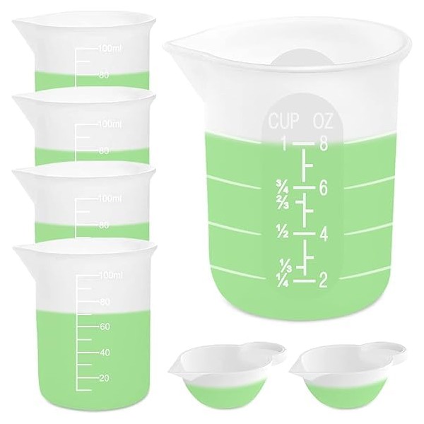 - CUPS EASY TO CLEANAll our measuring cups are made of silicone, smooth surface, non-stick and flexible, easy to clean. Suitable for measuring and mixing epoxy resin, acrylic paint, glue, various liquids.