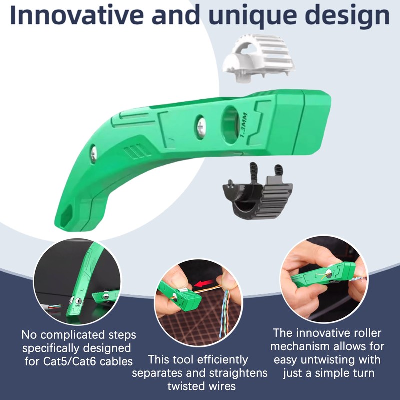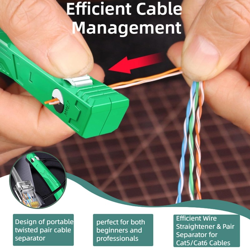 - 【Efficient Cable Management】Specifically designed for Cat5/Cat6 cables, this tool efficiently separates and straightens twisted wires, reducing clutter and speeding up network setups.The innovative roller mechanism allows for easy untwisting with just a simple turn.No complicated steps—perfect for both beginners and professionals.
