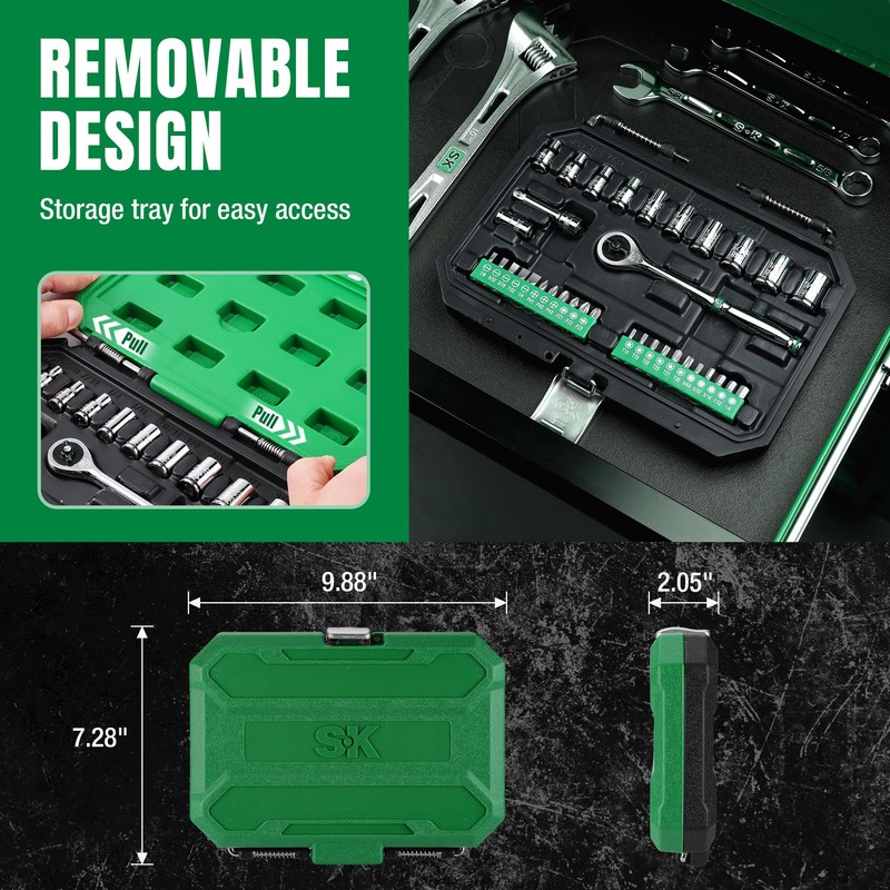 SK 1/4" Drive Socket Set with 216-P Quick-Release Ratchet, Socket Bits Set, 35-Piece, SAE, SuperKrome Finish, with Storage Toolbox