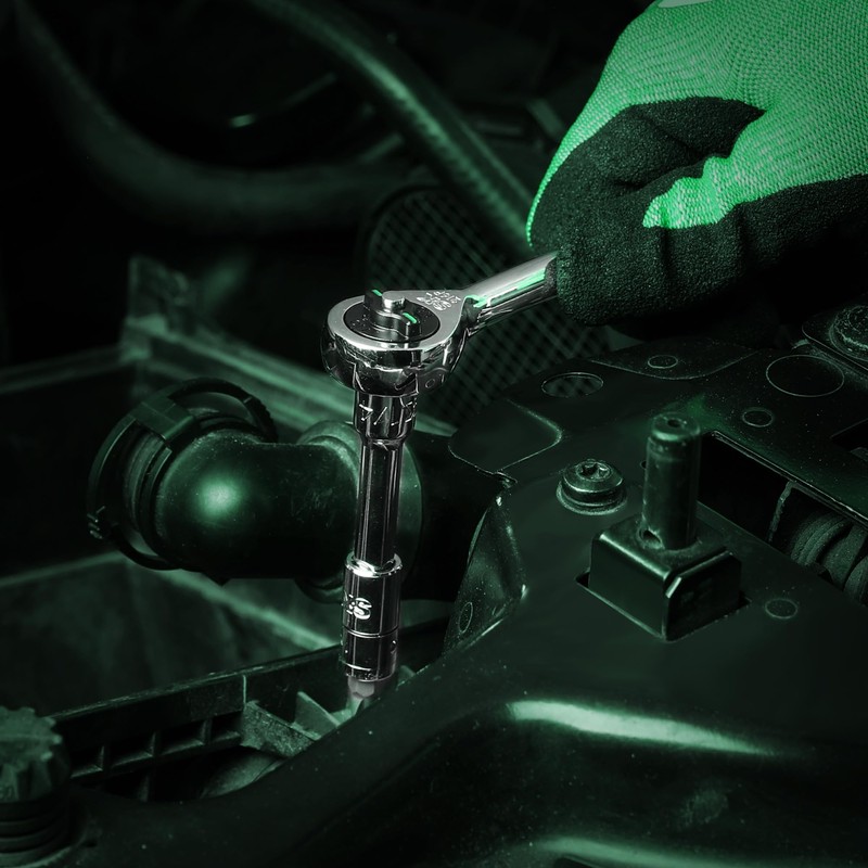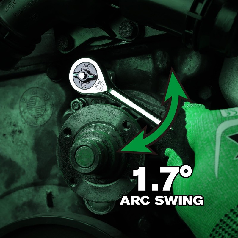 • Comes with a professional thumbwheel ratchet. 216-position ratchet realizes a 1.7 ° swing arc to turn a fastener in tight space with ease. The quick release button easily locks and replaces sockets. Thumbwheel design enables you to tighten or loosen fasteners with a flip of thumb