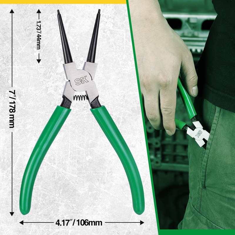 SK 7-Inch Snap Ring Pliers, Internal Circlip Pliers with Straight Jaw, Tip Diameter 5/64'', Premium CR-V Steel