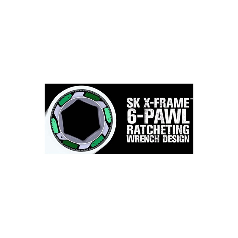 • 6-PAWL TECHNOLOGY: The SK Hand Tool X-Frame Ratcheting Wrench boasts the industry’s lowest 1.7° arc swing for maximum precision with 216 positions and the 6 pawls engage in pairs for power in tight spaces