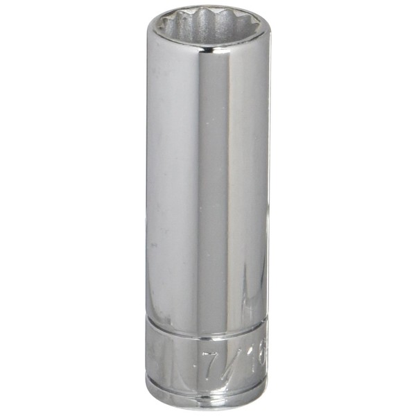 SK Professional Tools 44914 1/4 in. Drive 12-Point Fractional Deep Chrome Socket – 7/16 in, Cold Forged Steel Socket with SuperKrome Finish, Made in USA