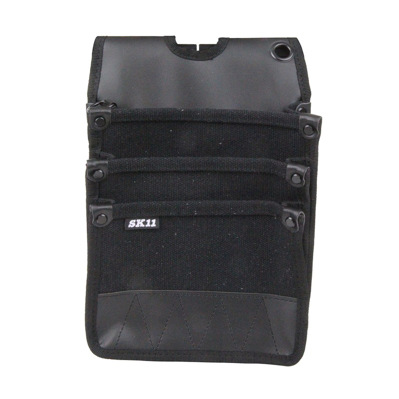 SK11 Canvas Waist Bag SHN-3D BK 3 Tier Pocket, Black