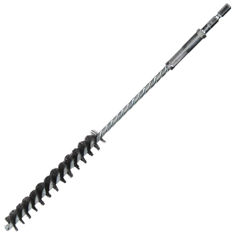 - Hole Diameter: 0.8 inches (20.0 mm), Compatible Hole Diameter: 0.8 inches (20.0 mm), Brush Length: 5.9 inches (150 mm), Shaft Length: 9.8 inches (250 mm), Wire Diameter: 0.01 inches (0.2 mm)