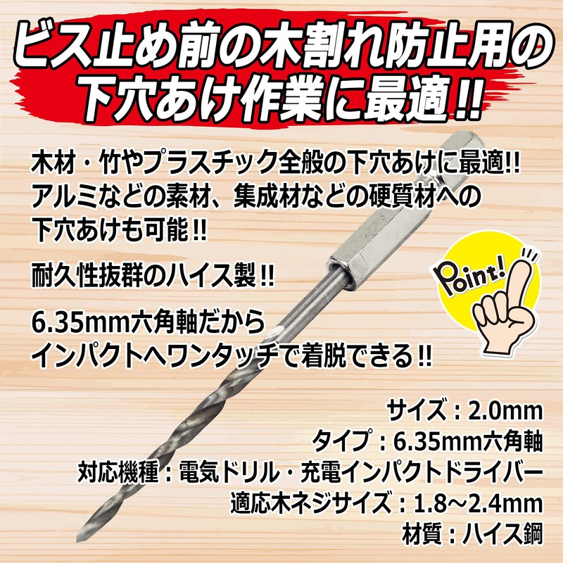 SK11 Hexagonal Shaft, High Speed Woodworking Punching Hole Drill, 0.08 inch (2.0 mm)