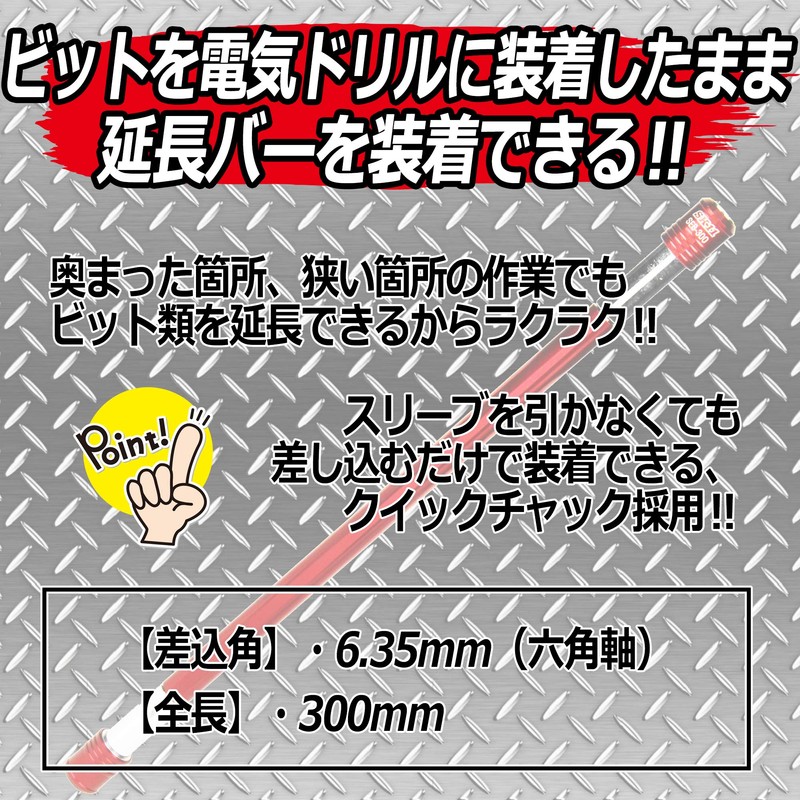 - Features: Extension bars can be installed while the bit is attached to the electric drill