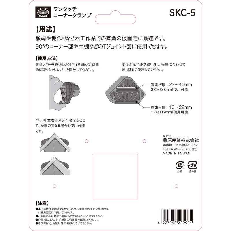 SK11 SKC-5 One-Touch Corner Clamp, Can be Used for 1 or 2 Wood