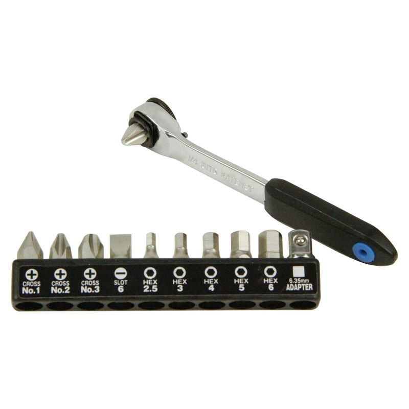 - Set Includes: Slim ratchet screwdriver, 0.6 inch (16 mm) single-head bit + No.2, 19 mm single-head bit + No.1, + No.2, + No.3, -6 mm, H2.5, H3, H4, H5, H6, 6.35 sq. adapter bit for sockets