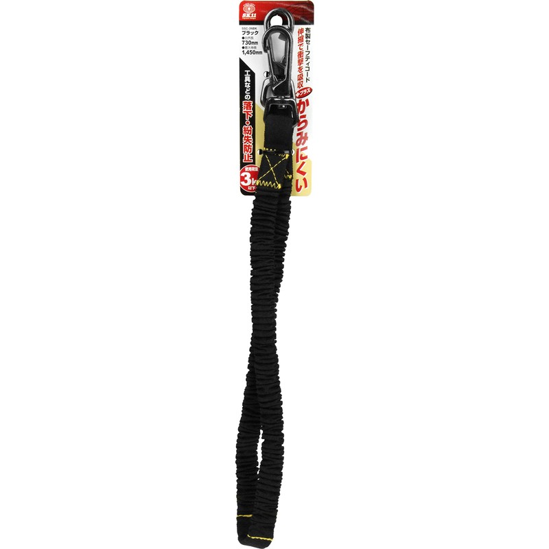 SK11 SSC-3NBK Anti-Tangle Fabric Safety Cord, Black, Natural Length, Approx. 28.7 inches (730 mm)