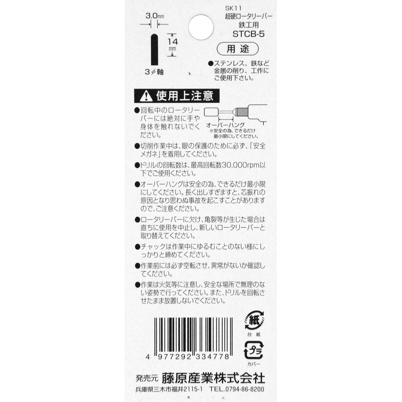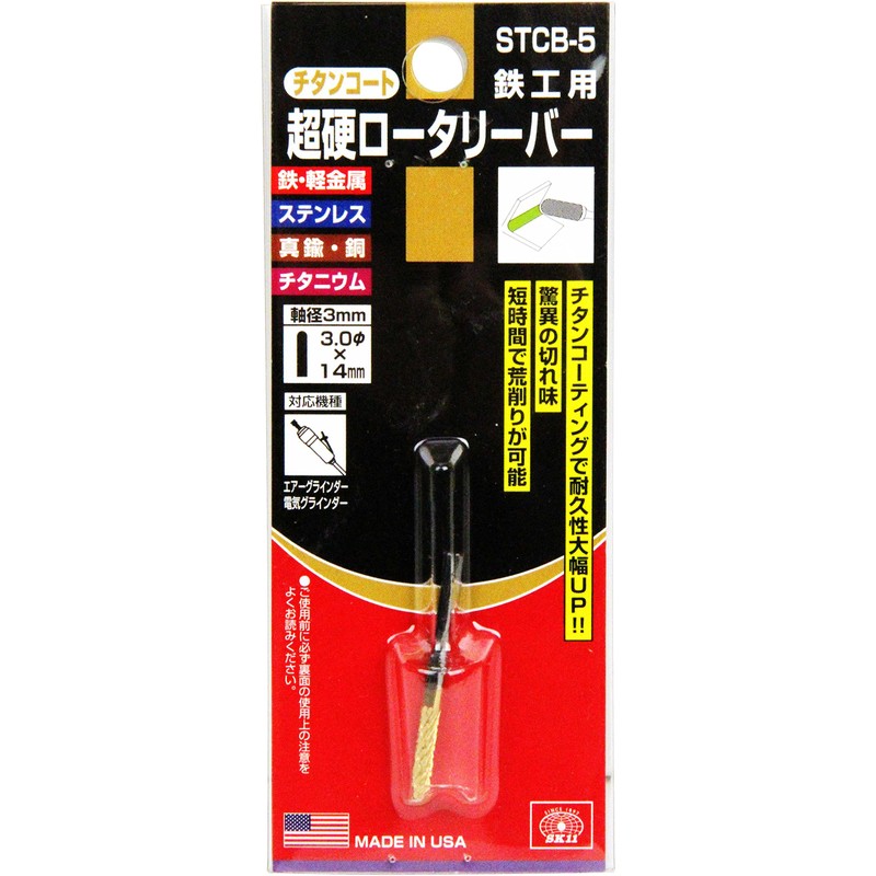 SK11 STCB-5 Shaft Diameter 0.1 inch (3 mm) Titanium Coated Carbide Rotary Bar for Ironworking, Round Tip Cylindrical 0.12 x 0.6 inches (3.0 x 14 mm)