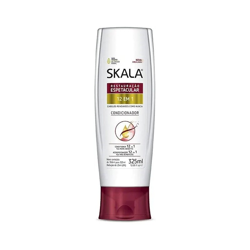 The Skala 12in1 Conditioner is a true multitasker for hair that needs some extra care. This rich formula is packed with vitamin E, D-panthenol, and no less than twelve powerful ingredients such as plant-based keratin, avocado oil, argan oil, plant-based ceramides, and shea butter. Together, they repair damaged strands, deeply nourish, and address issues such as dryness, split ends, dullness, roughness, breakage, porosity, and loss of vitality.
