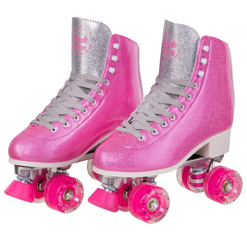 Skate Gear Sparkly Retro Quad Roller Skates (Glitter Pink, Women's 9 / Men's 8)
